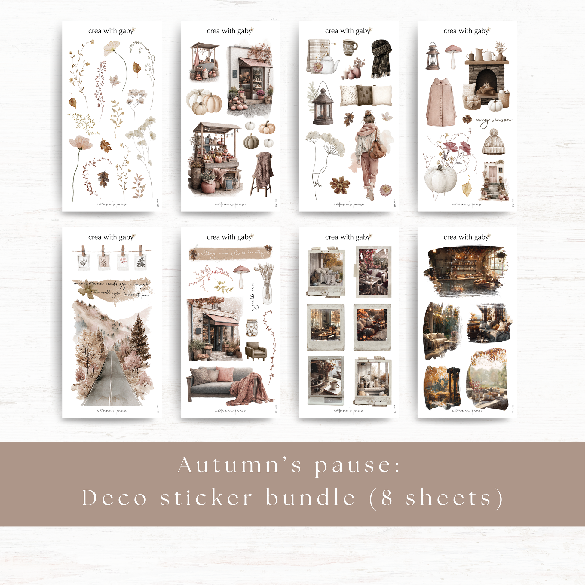 Printed on high-quality, semi-transparent washi paper. The bundle contains 8 different sticker sheets measuring approximately 8.5cm x 16cm