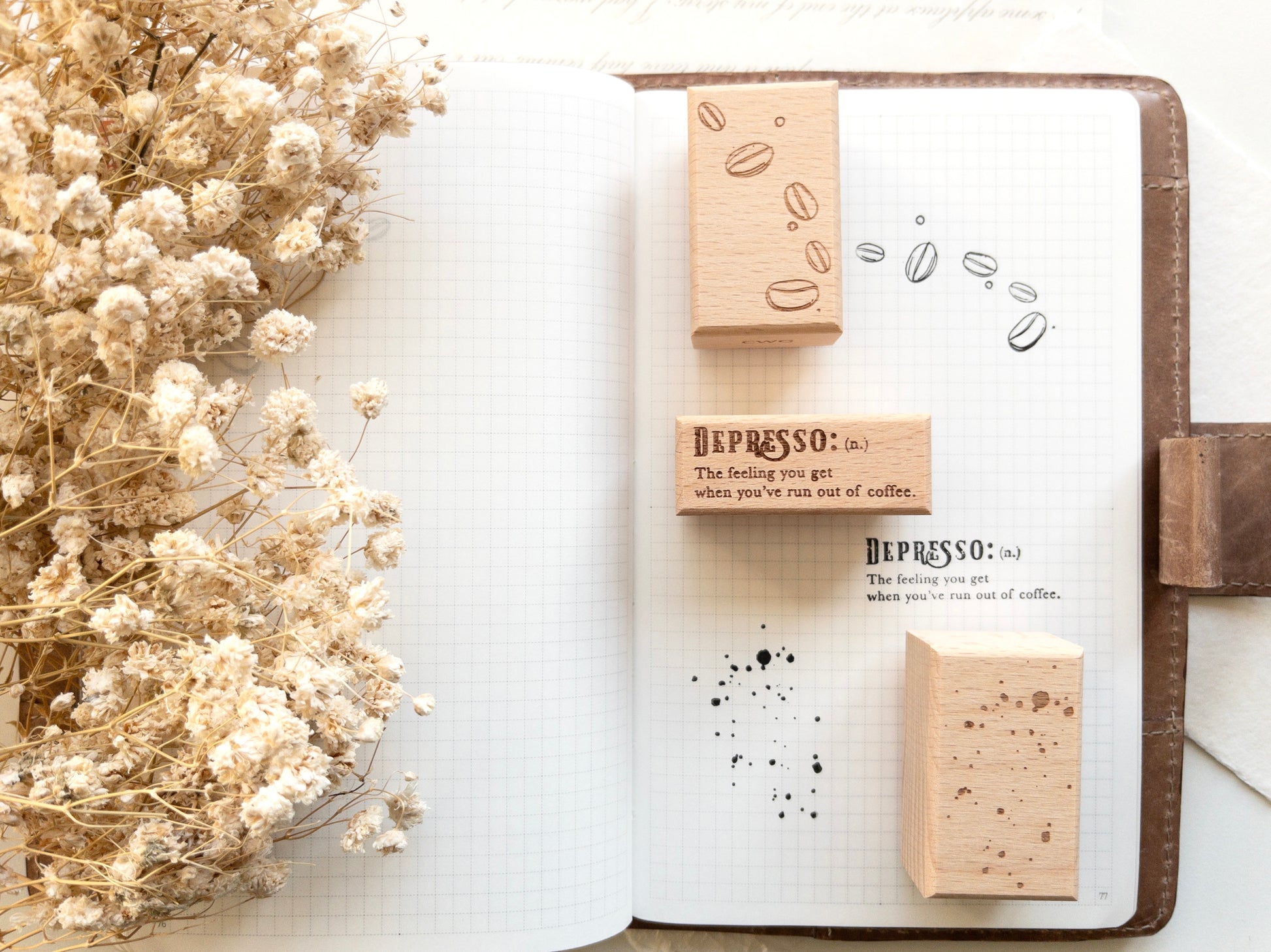 2cm tall wooden handle, engraved design and resin rubber for a crisp print. Each stamp measures 50mm x 3mm.