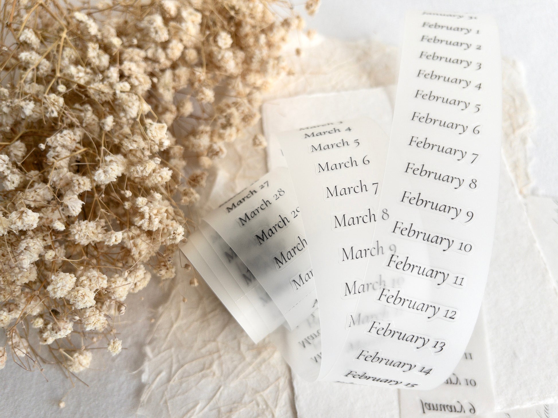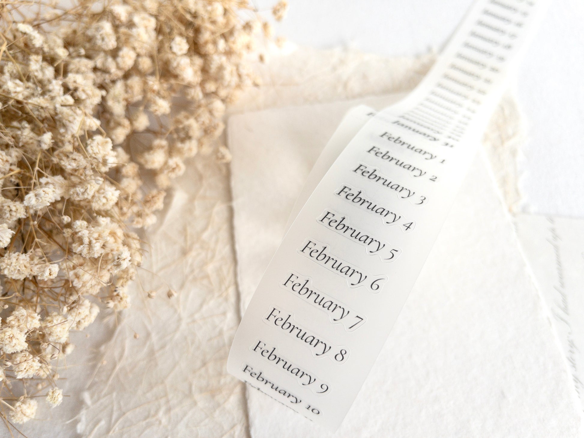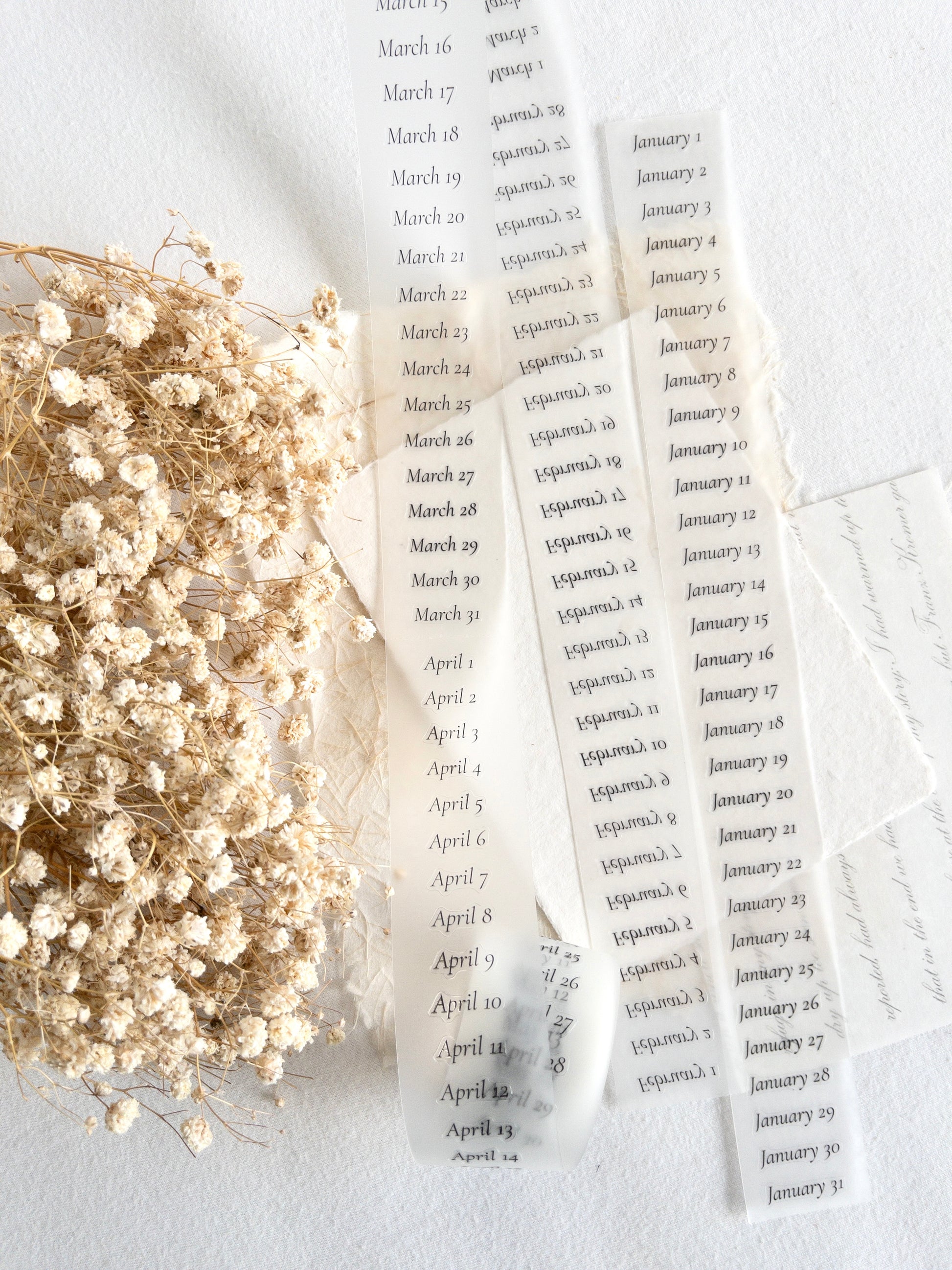 A beautiful and elegant tape, 7m long and contains two loops of 365 days. There are tearing lines between each month, so you can easily store in your planners. Printed on high-quality PET material with a very soft raised effect.