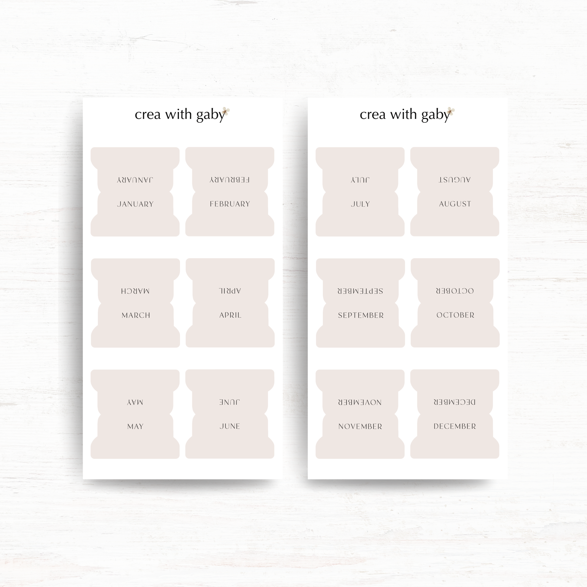 Printed in high-quality vinyl paper. Two sticker sheets measure 16cm x 8cm. Contains 12 tabs, one for each month of the year.