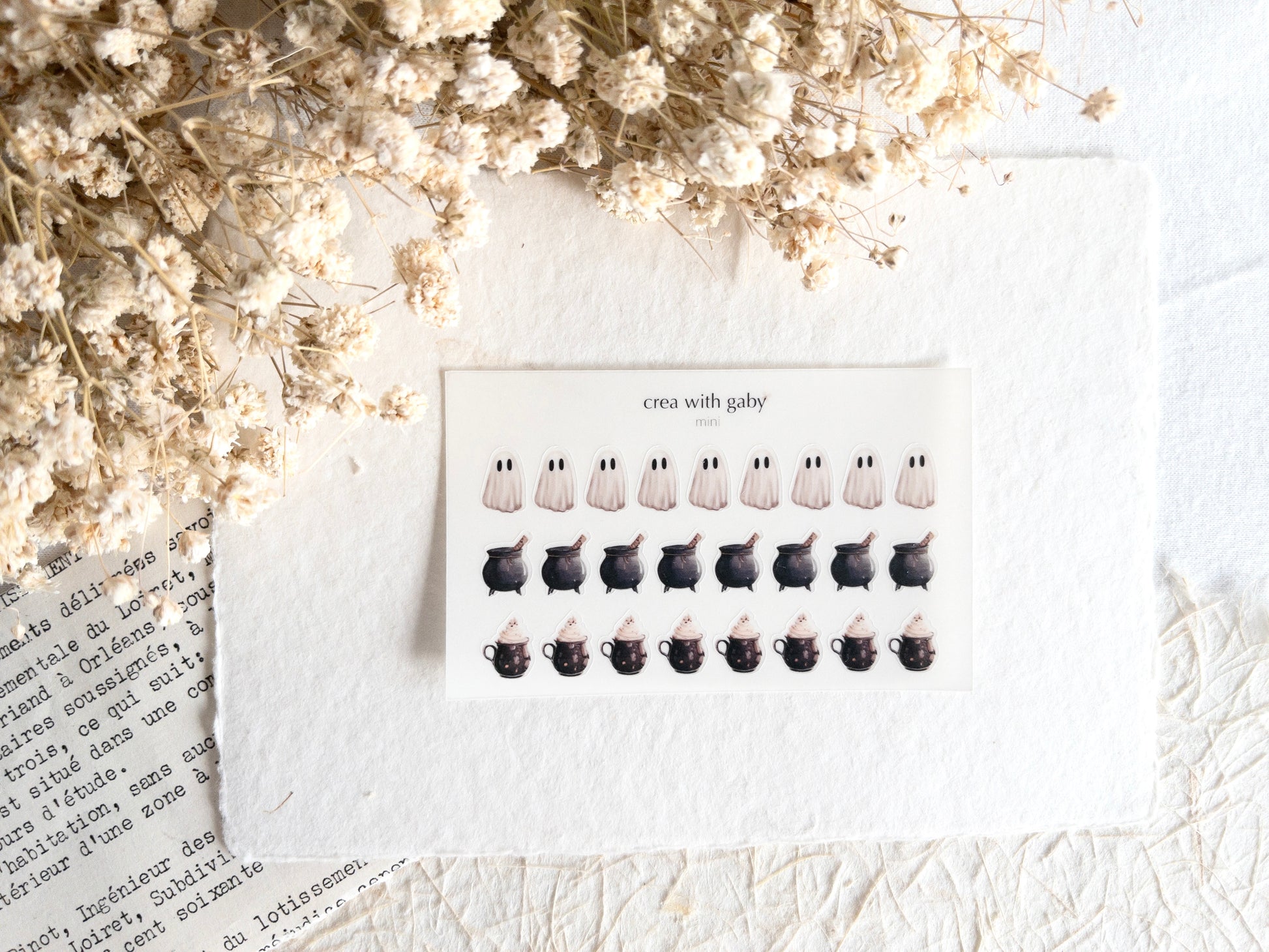 Add a spooky touch to your planners & journals with these mini icons. Printed on clear matter sticker paper. This listing is for one mini sticker sheet.