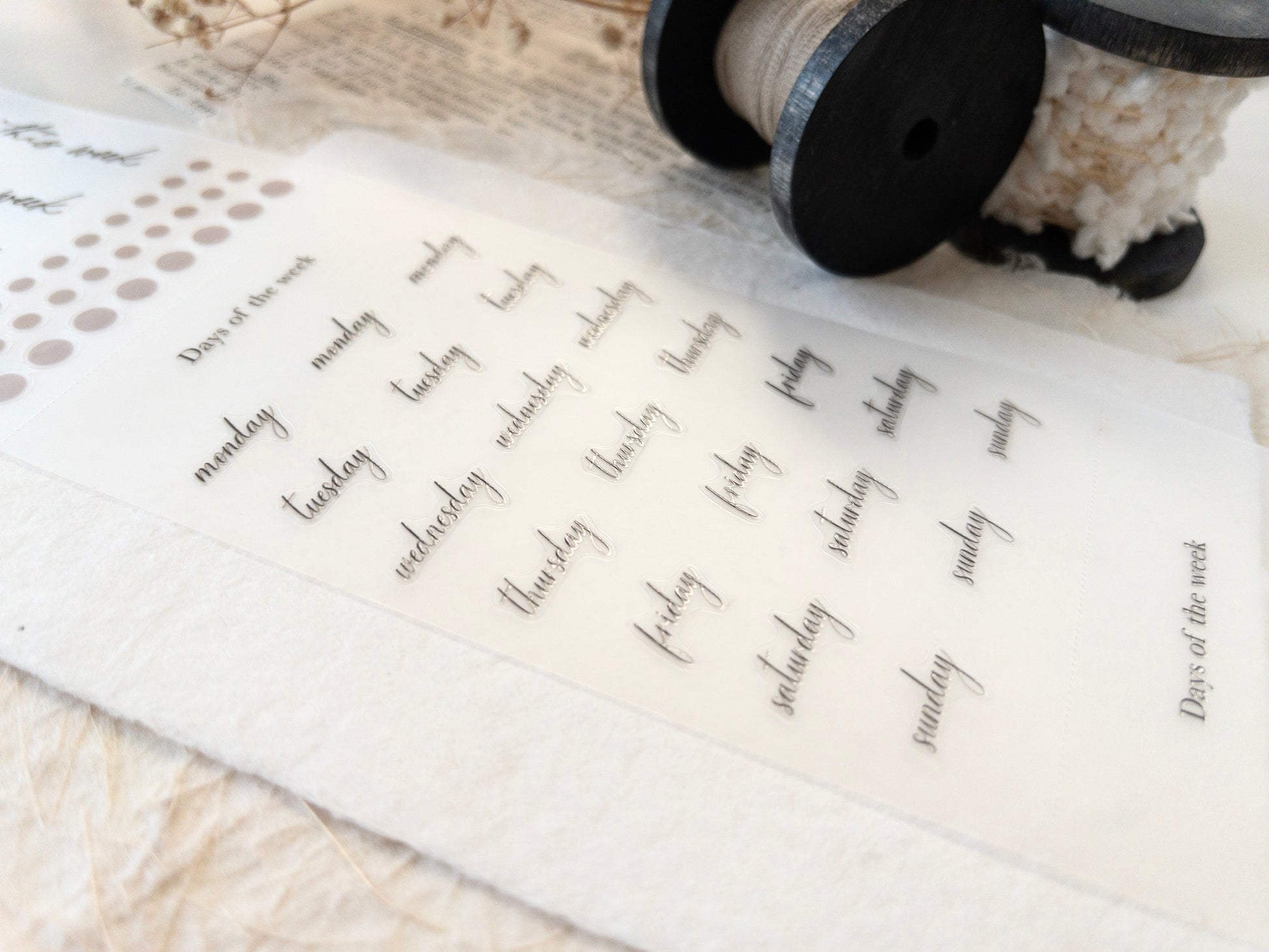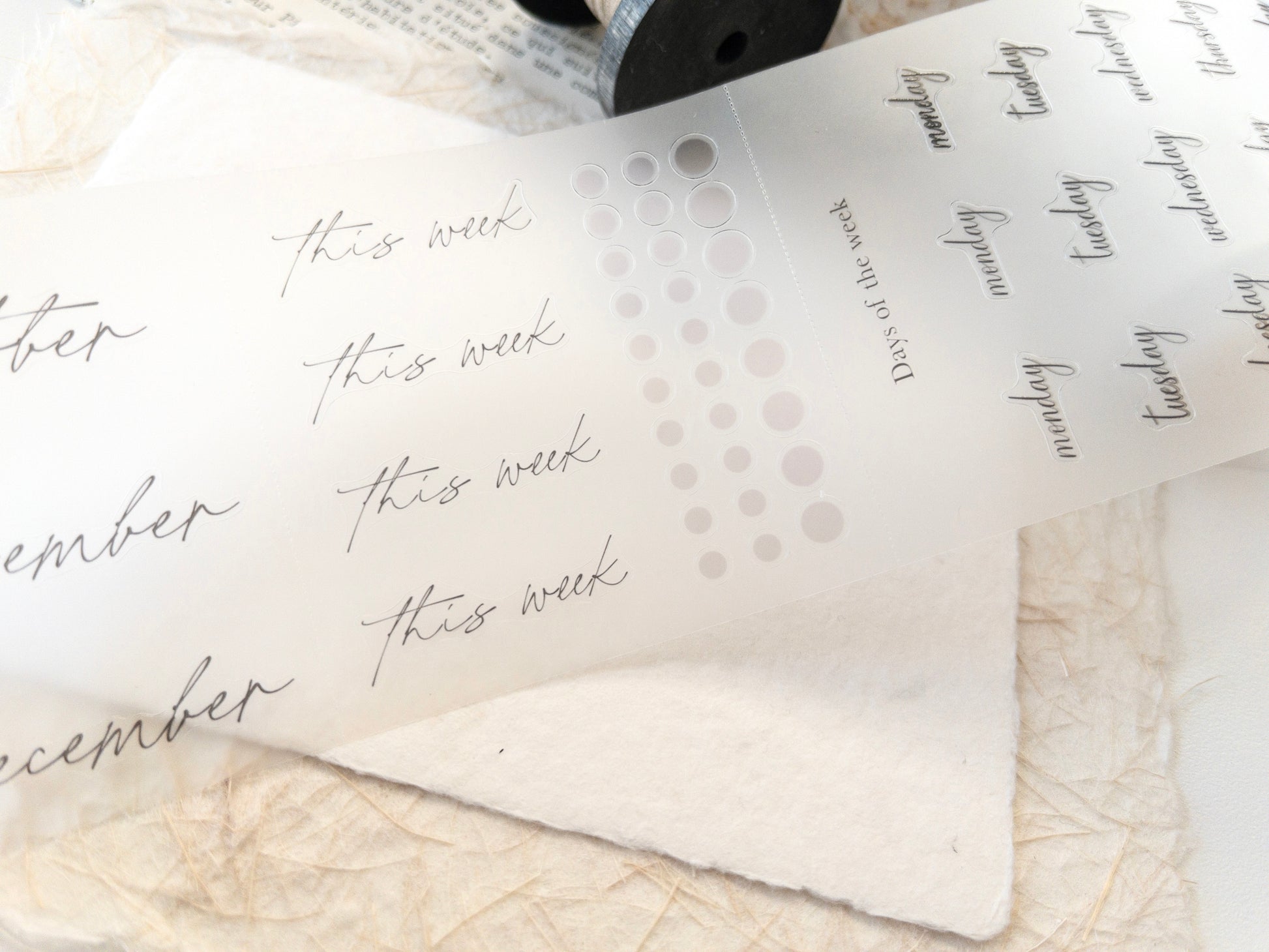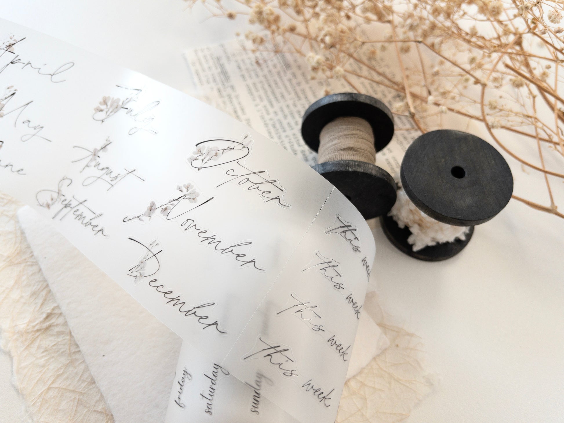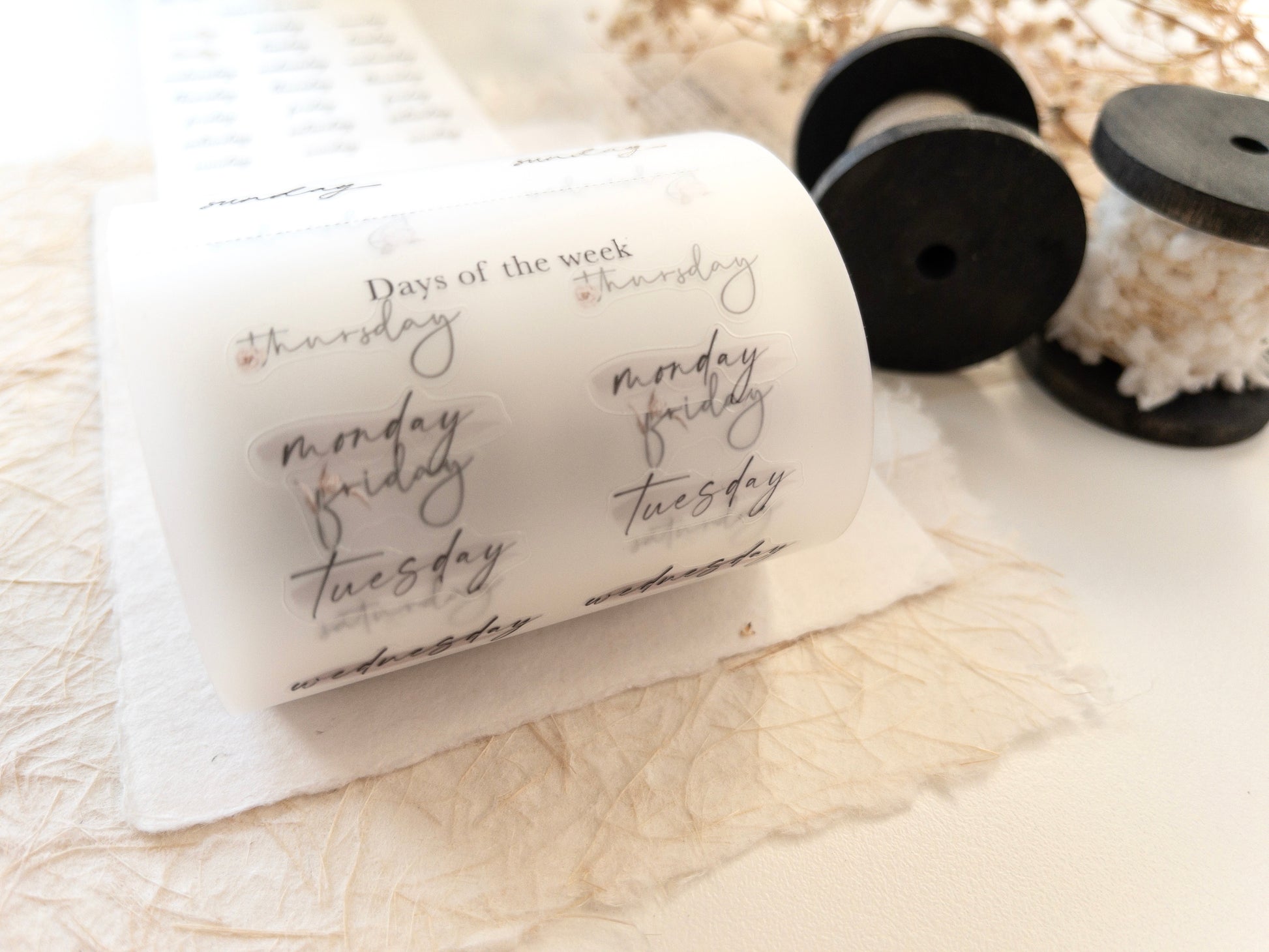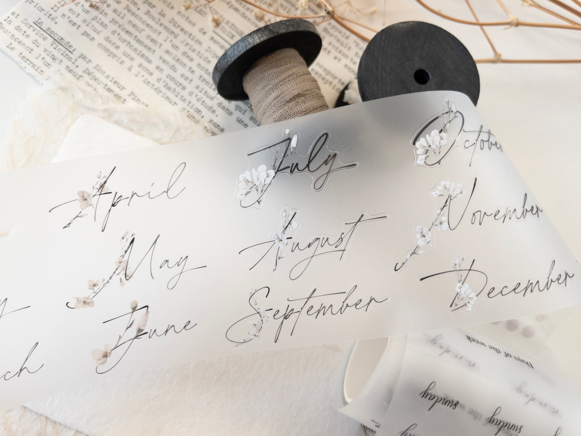 The tape is 7.5cm wide, and the design loop is 100cm long. Within the design, the tape is segmented to offer different functional stickers, including days of the week, monthly headers and more. Each section is separated by tearing lines for ease of storage and transportation.