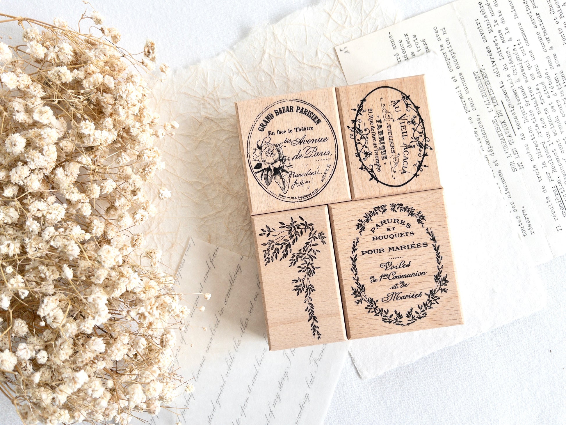 2cm tall wooden handle, printed design and resin rubber for a crisp print. Measures: